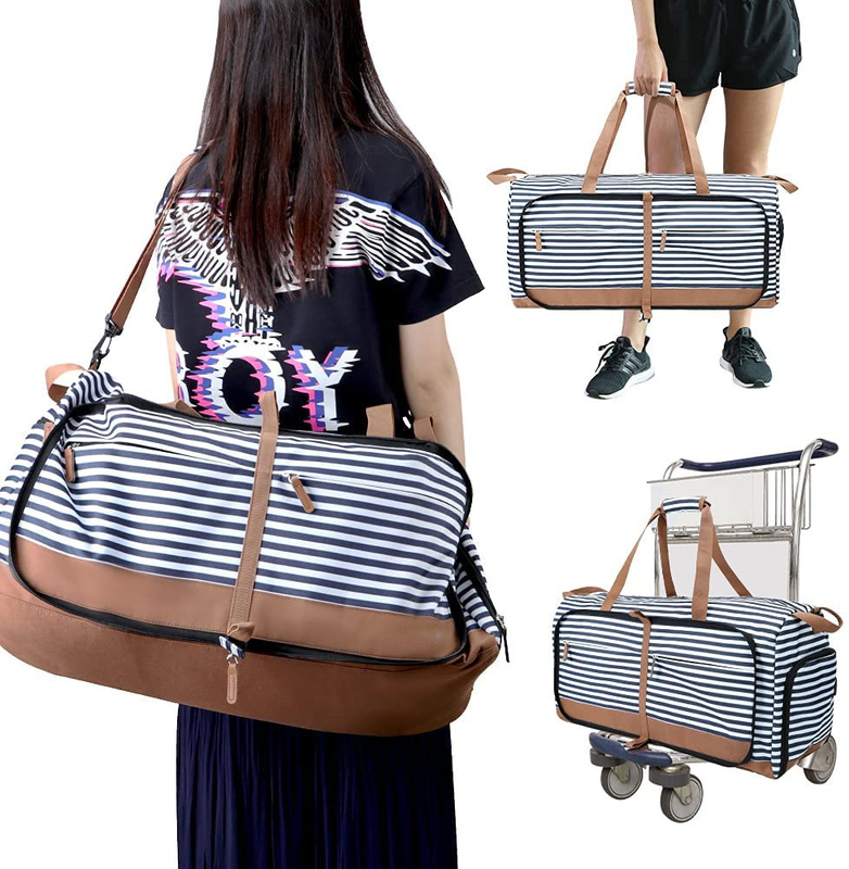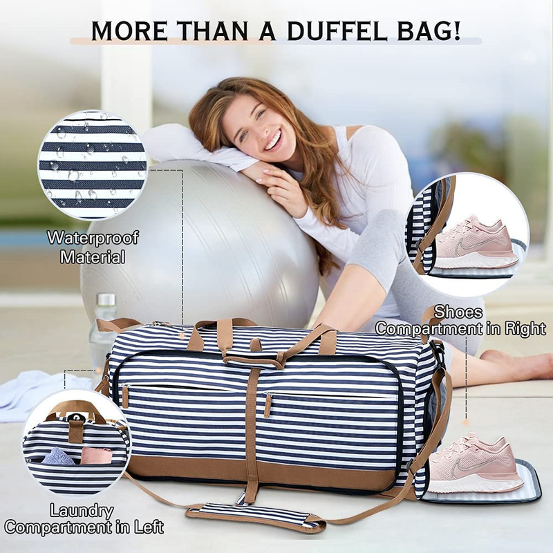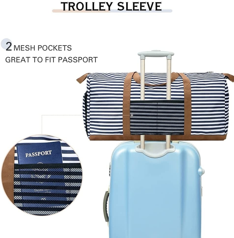 Bolso de viaje plegable de 60L Bolso de viaje de noche Bolso de viaje azul con compartimiento para zapatos 24.8X11.8X11"