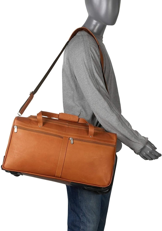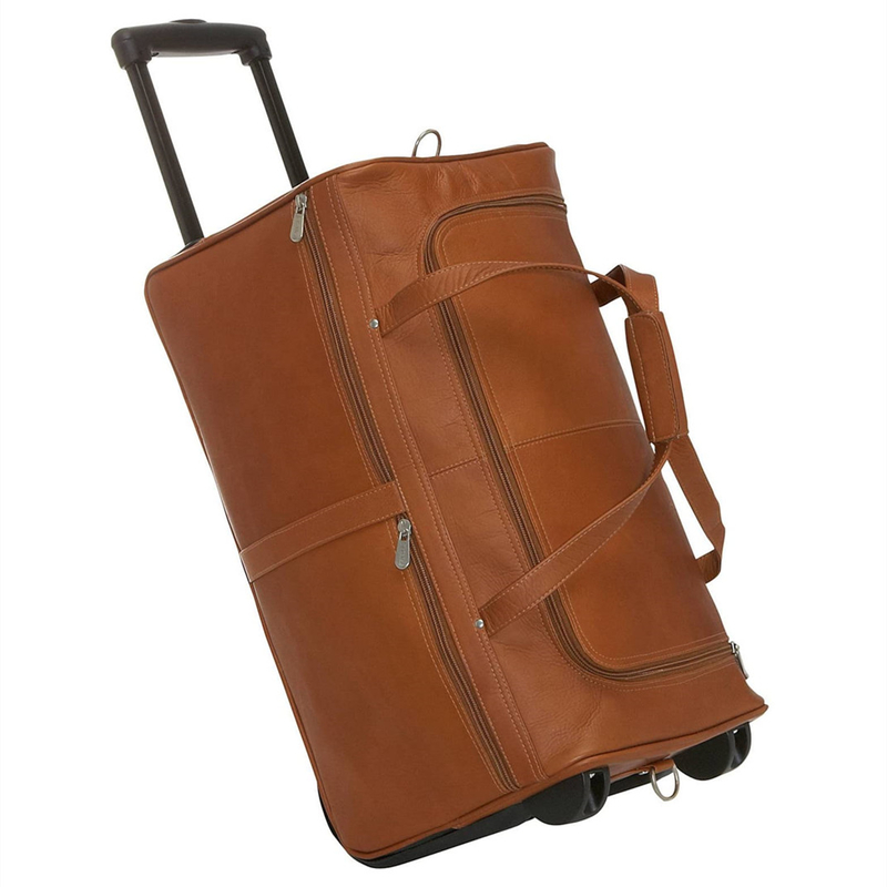 Bolso de viaje de cuero genuino en ruedas con mango de carro telescópico