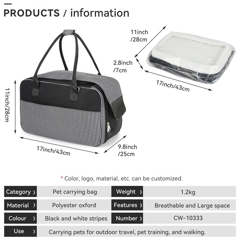Viene con una bolsa de excremento, un bolsillo delantero, varios bolsillos de malla en el costado para guardar suministros esenciales para mascotas.que le permite llevar este bolso de mano o sobre el hombro.
