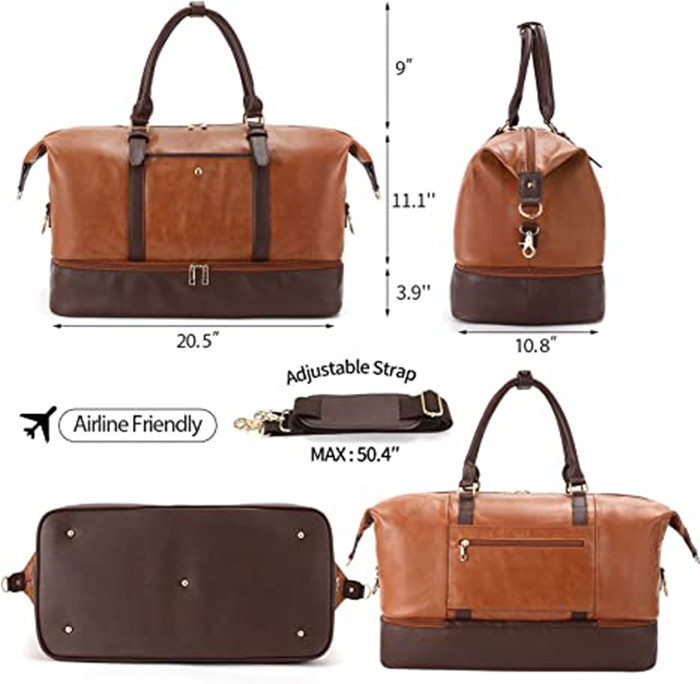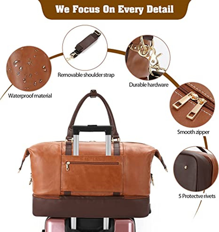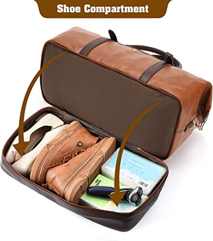 Nombre del producto | Bolso de fin de semana de cuero de PU Bolsas de viaje de noche Carry on Bag con Compartimiento para zapatos y portátil |