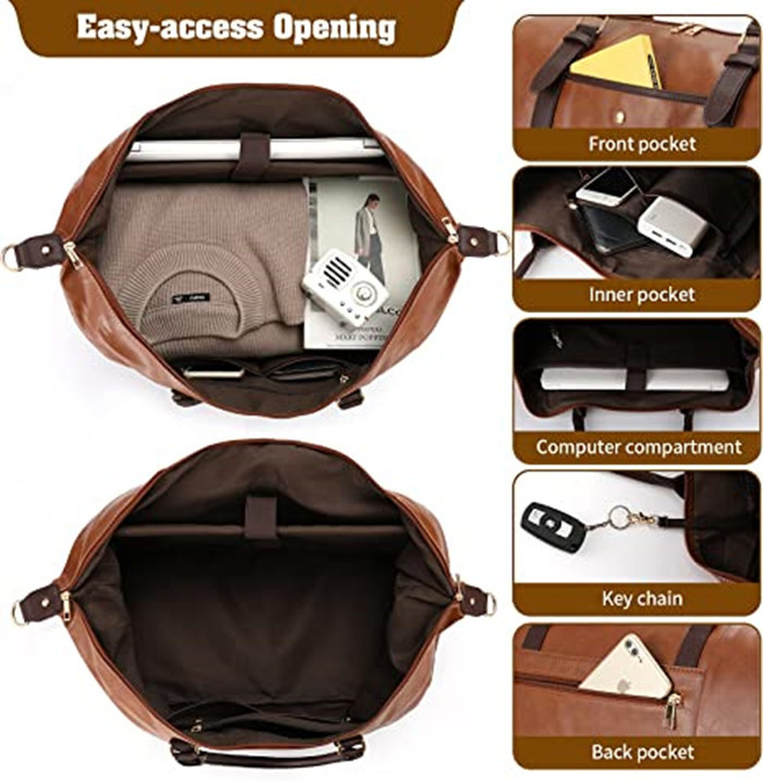 Este bolso de noche es 100% de cuero de lujo e impermeable.Conveniente y fácil de llevar, ideal para pasar la noche, viaje de negocios, vacaciones, fin de semana, gimnasio y actividades al aire libre,bolsa de mamá para el hospitalGimnasio, trabajo, viajes, infinitas posibilidades.