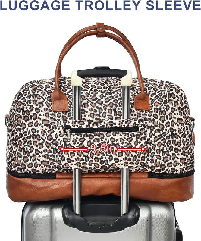Nuestra bolsa de noche tiene mucho espacio con dimensiones de 21 "L × 13" H × 9.5 "W. Puede empacar fácilmente ropa, zapatos, artículos de tocador, cosméticos y dispositivos electrónicos durante 2-4 días.El cinturón de hombro ajustable se extiende hasta 49 "o 54" de ancho y puede caber portátiles hasta 21.5" y