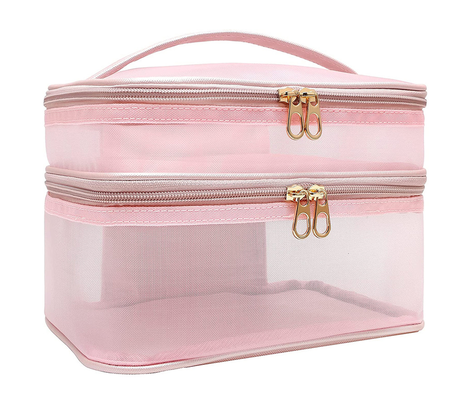 Bolsa cosmética de lujo de malla de nylon doble capa acepta logotipo personalizado