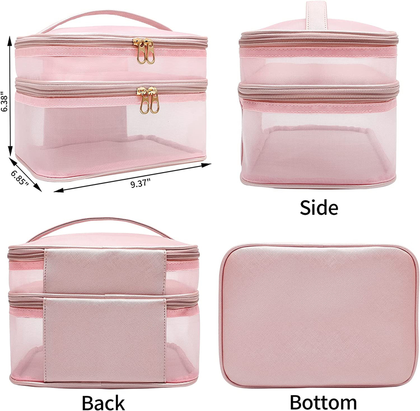 Bolsa organizadora de maquillaje clara - A diferencia de las bolsas de maquillaje tradicionales, esta bolsa de maquillaje mejorada tiene un diseño de doble capa, muy fácil de clasificar y almacenar,esta bolsa cosmética de malla está diseñada para ser transparenteEs ideal para guardar su lápiz labial, brillo labial, paletas de maquillaje, cepillos para el cabello, productos para el cuidado de la piel, esmalte de uñas, y así sucesivamente.sin preocuparte de que no puedas encontrarlos.