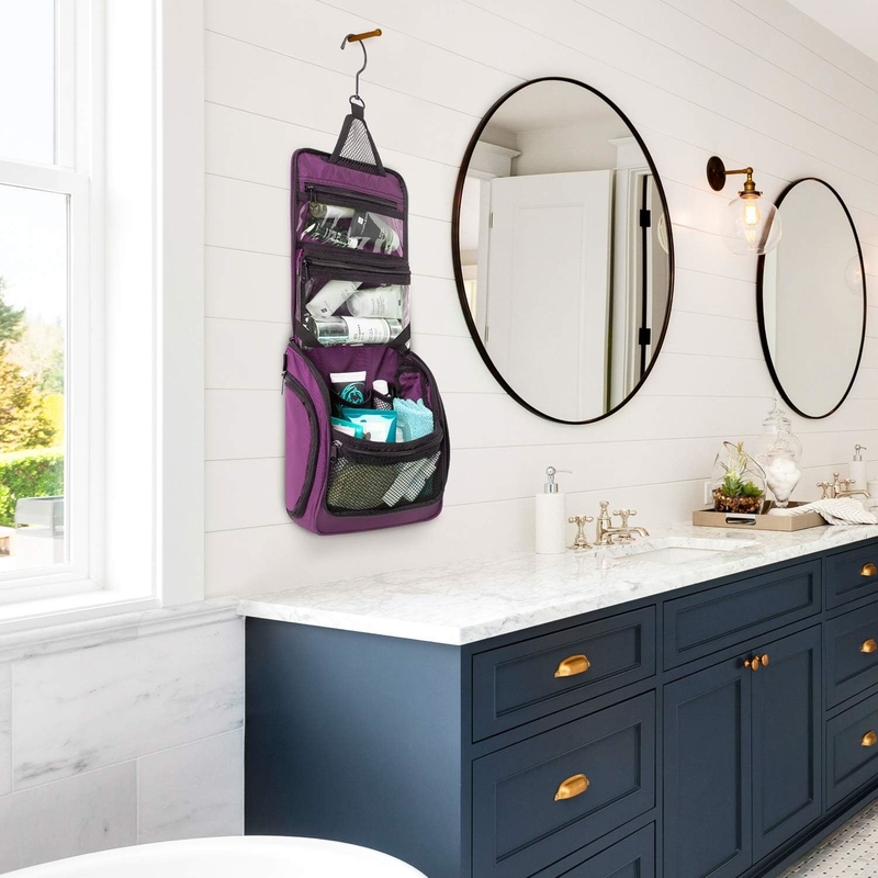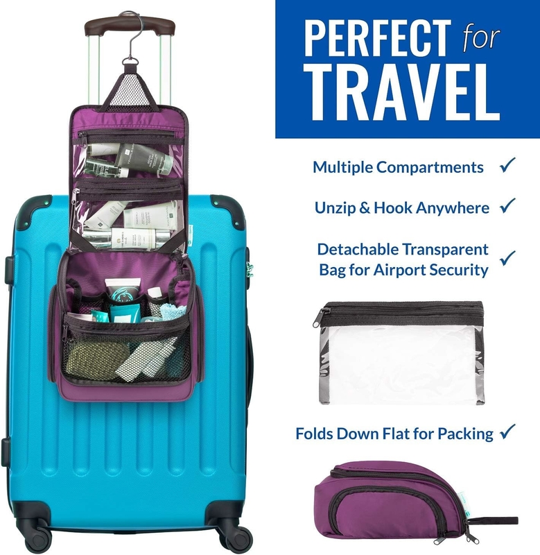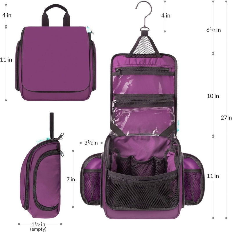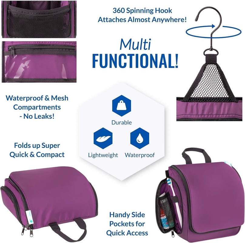 El robusto gancho es lo suficientemente grande como para colgar su kit de aseo de viaje o bolsa de lavado de cualquier gancho, puerta, barra, cuenco o incluso un árbol cuando acampa.Más fácil que un kit de afeitado Dopp como artículos de tocador son fácilmente accesibles y visibles cuando colgadoUna bolsa de higiene de viaje perfecta y un organizador.