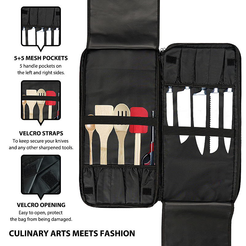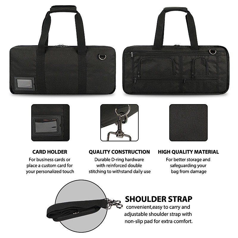 - PERFECTO PARA PROFESIONALES Y ESTUDIANTES Para aquellos que disfrutan de comprar artículos de alta calidad que duran mucho tiempo y están muy bien diseñados, esta es su bolsa de almacenamiento de cuchillos.El diseño probado y verdadero ha sido probado y refinado por chefs de todo el país..