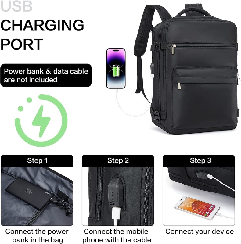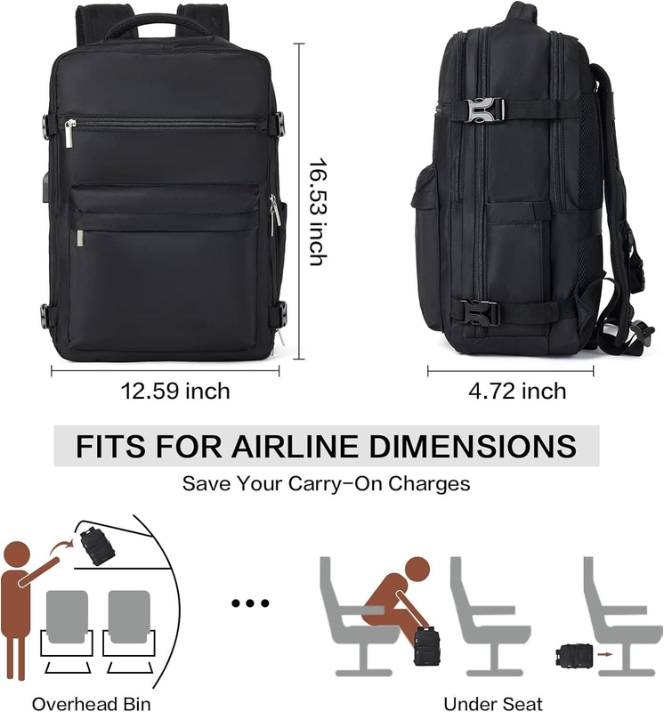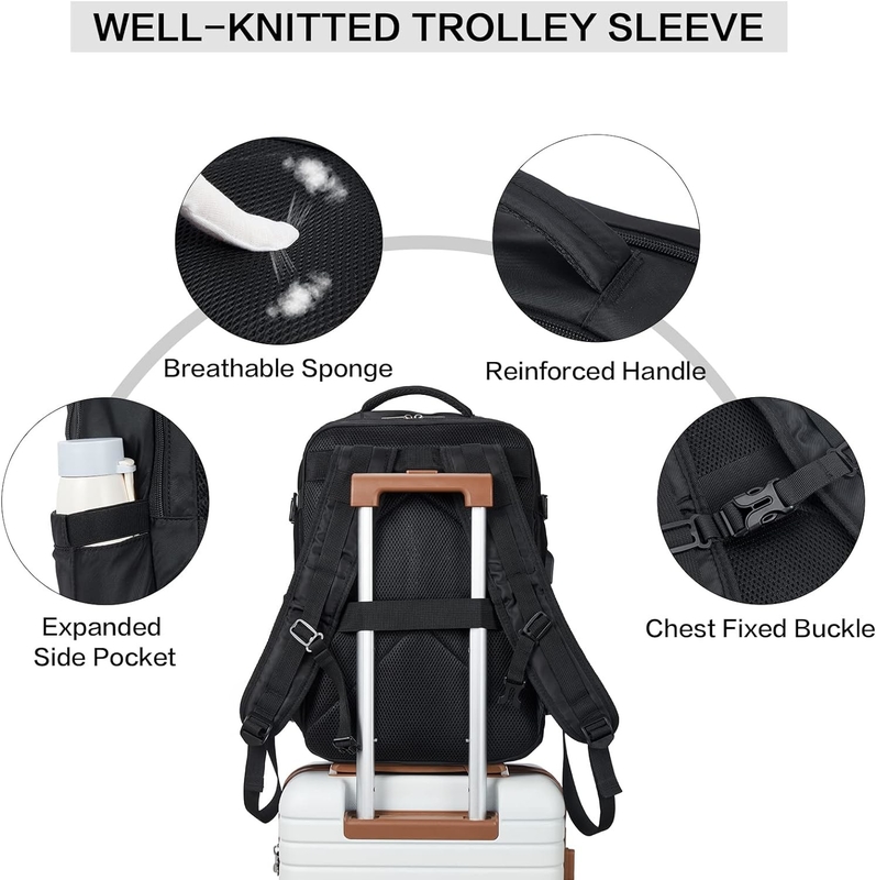 La mochila de viaje está hecha de material de poliéster duradero con buena permeabilidad al aire y disipación de calor. Si se ensucia, puede limpiarla suavemente con toallas de papel mojadas.El diseño de retroceso de flujo de aire cómodo es ergonómico, el acolchado ventilado de múltiples paneles grueso y suave proporciona soporte para la espalda, correas de hombro transpirables y ajustables y una hebilla torácica para aliviar la presión del hombro.