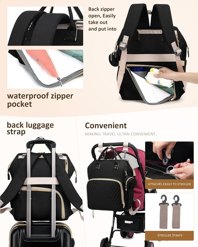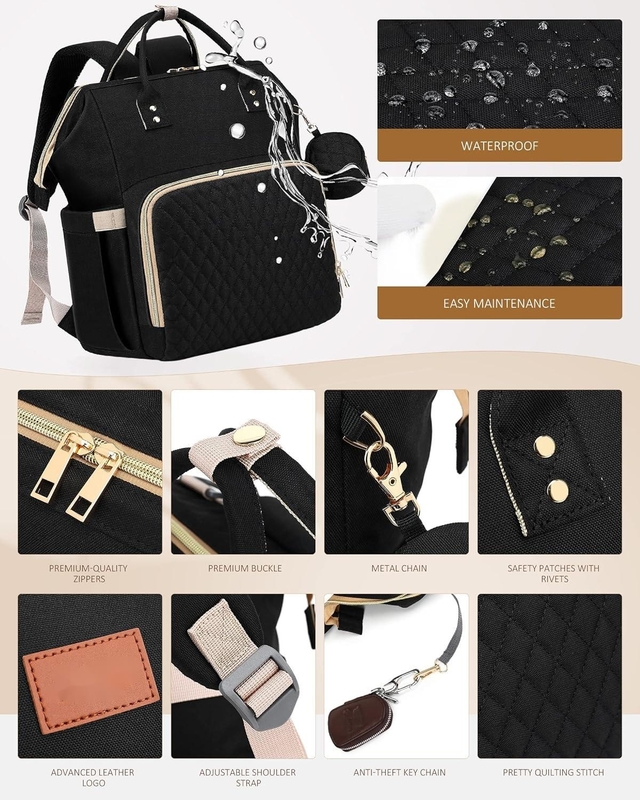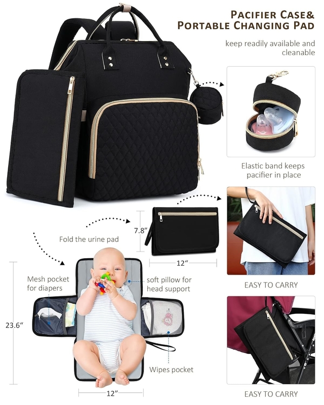 Nuestras bolsas de bebé para niños/niñas tienen una caja de chupete cómoda e higiénica y 2 correas para sujetar la bolsa a un cochecito, manteniendo las manos libres para su pequeño.Cinturones de cochecito incorporados colgar la bolsa en el cochecito sólo 3s, liberando sus manos.