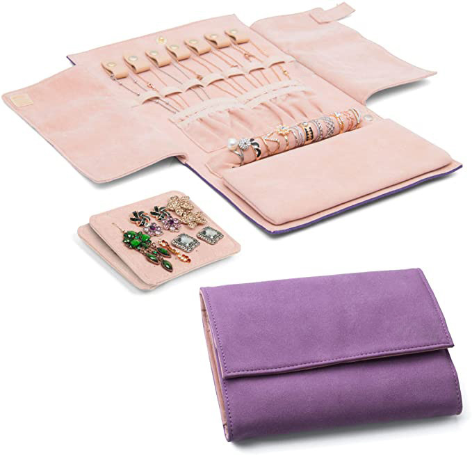 Bolso de joyería de gran capacidad de cuero organizador de rollo de viaje